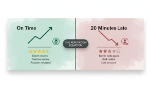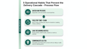 Pad stop time for complex setups. Elevator access, loading docks, parking lot walks — add five extra minutes per stop. One underestimated stop creates a cascade that delays everything after it.